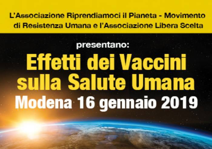 Riparte da Modena la campagna no vax. L’associazione Riprendiamoci il Pianeta e l'Associazione Libera scelta organizzano infatti mercoledì 16 gennaio alle 20.30 alla Sala Ulivi, di via Ciro Menotti una serata informativa dedicata al tema: Effetti dei Vaccini sulla Salute Umana.