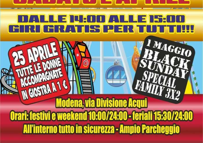Il 25 aprile al luna Park di Modena nel parco Ferrari le donne accompagnate da un uomo potranno andare 'in giostra a 1 euro'. Così pubblicizzano i manifesti pubblicitari del Consorzio 'Parco Ferrari in Giostra' che il Comune ha intimato di rimuovere.
