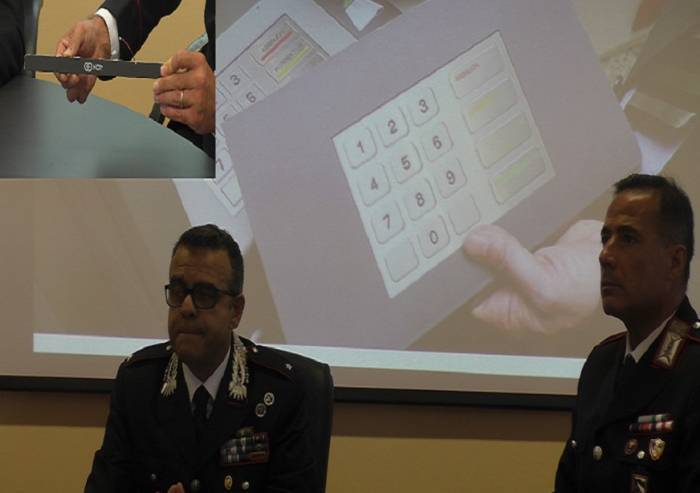 Una delle ultime frontiere della truffa digitale che in questo caso i Carabinieri del Nucleo operativo radiomobile della compagnia di Sassuolo, su segnalazione di un cittadino che allo sportello bancomat dell’ufficio postale di Corlo di Formigine aveva segnalato la presenza di una barra anomala sulla parte superiore della tastiera, hanno sventato. A spiegare, con l’ausilio delle immagini, come funziona la truffa, il Comandante del nucleo operativo della compagnia di Sassuolo Vito Agliano.