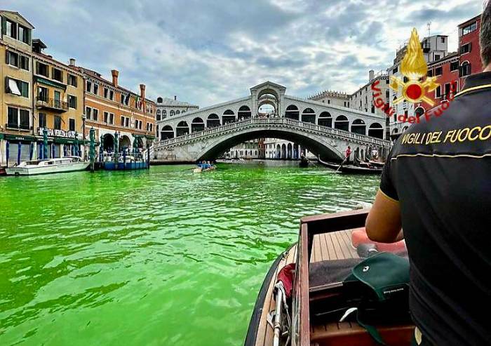 Il Canal Grande di Venezia cambia colore. Questa mattina, intorno alle 9.30, all’altezza di ponte di Rialto è comparsa una chiazza verde fosforescente nell’acqua del Canal Grande, tra l’incredulità dei passanti. Ignote per ora le cause, si ipotizza un’azione dimostrativa di gruppi ambientalisti, ma per ora non ci sono rivendicazioni. Su quanto accaduto sta indagando la Polizia locale. Intanto i vigili del fuoco e l’Arpav stanno conducendo analisi per stabilire la natura della sostanza in acqua.
