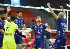 Leo Shoes PerkinElmer Modena: Mossa De Rezende 1, Ngapeth E. 18, Mazzone 8, Abdel-Aziz 24, Leal 18, Stankovic 8, Gollini (L), Sanguinetti 0, Sala 1, Rossini (L), Van Garderen 1, Salsi 0. N.E. Ngapeth S.. All. Giani.