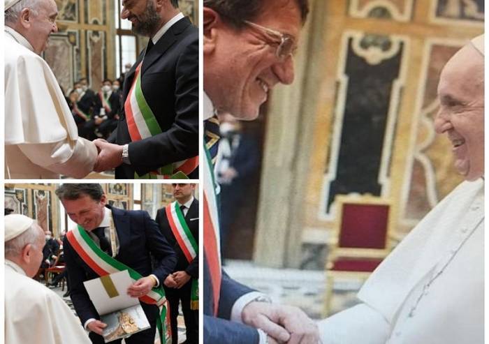 Stupore di fronte alle immagini di schiere di sindaci (tra cui quello di Modena), senza protezioni a parlare e stringere la mano al Santo Padre