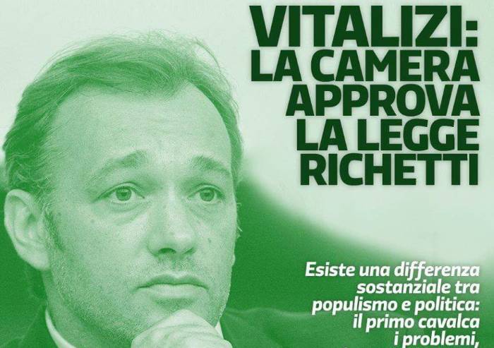 Di fatto stasera Matteo Richetti lo ha ammesso: la legge sui vitalizi è improbabile venga approvata entro la fine della legislatura e quindi resterà lettera morta al Senato. Richetti stasera a Otto e mezzo, incalzato dalla Gruber, ha affermato che sui vitalizi non verrà posta la fiducia, mentre sullo Ius soli sì e ha aggiunto: 'Ma io sui vitalizi non ci devo fare propaganda sopra'. E mentre lo diceva si è messo a ridere da solo.