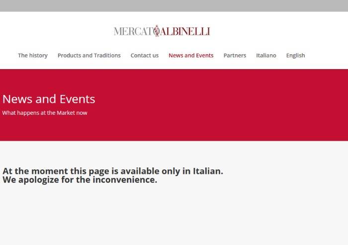 Non so cosa abbiano scelto tra le alternative – Albinelli incluso – che abbiamo loro proposto. Sta di fatto che l'incontro è stato per noi illuminante. Sufficiente per capire, una volta di più, che dietro la 'rivoluzione' muzzarelliana sulla storica struttura di via Albinelli, più volte annunciata in questi anni di grande movimentazione comunicativa, non c'è alcuna strategia di promozione turistica. E con essa la declinazione comunicativa dell'immagine del Mercato è quella che appare ad un medio osservatore: insufficiente. Soprattutto, se la guardiamo con gli occhi di un potenziale turista straniero, abituato a stimolazioni emozionali ben maggiori di quelle che trasmette, innanzitutto, il sito web del Mercato Albinelli.