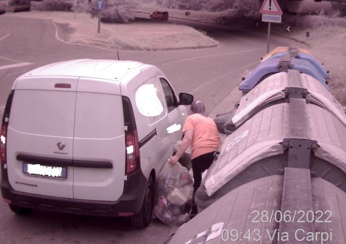 E ancora: 'a giugno 2022, una donna scarica da un furgoncino in sosta davanti all’isola ecologica diversi grossi sacchi di rifiuti indifferenziati che abbandona tra i cassonetti evitando di pagare la tariffa ma incorrendo nella sanzione grazie alla lettura della targa del furgoncino'. E ci sono 'persone che, magari perché hanno sbagliato il giorno del conferimento o non aspettano il ritiro da parte di Hera, e allora abbandonano in strada i sacchetti blu e gialli della carta e della plastica. Come accaduto il 6 febbraio a Cognento, dove è già attiva la raccolta porta a porta per la carta e la plastica. Un abbandono che, anche in questo caso, è stato ripreso dalla telecamera'.