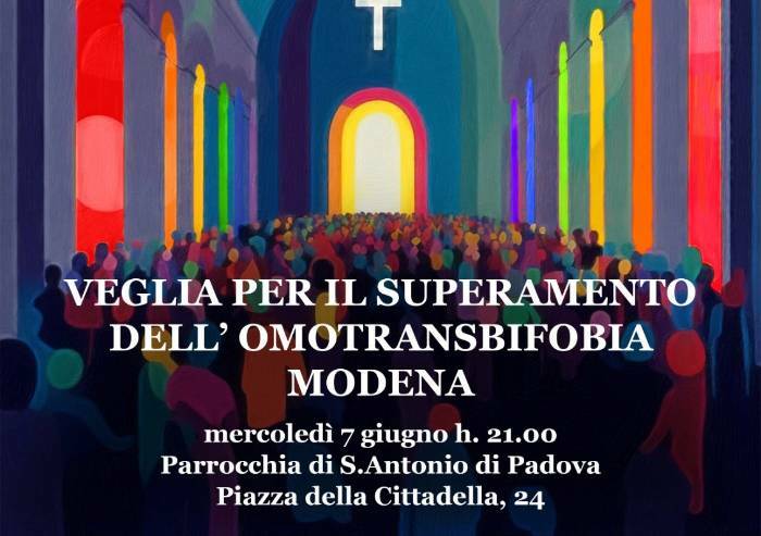 Si ripete a un anno di distanza la 'veglia di preghiera per il superamento dell’omotransfobia'. Lo scorso anno la veglia si tenne presso la Parrocchia di Gesù Redentore di Modena, quest'anno invece l'appuntamento (che rispetto al 2022 ha aggiunto la sillaba 'bi' con omotransbifobia in omaggio ai bisessuali) è per mercoledì 7 alle 21 alla Parrocchia di Sant'Antonio di Padova in piazza Cittadella ed è comunque sponsorizzata sul sito della Parrocchia Gesù redentore.