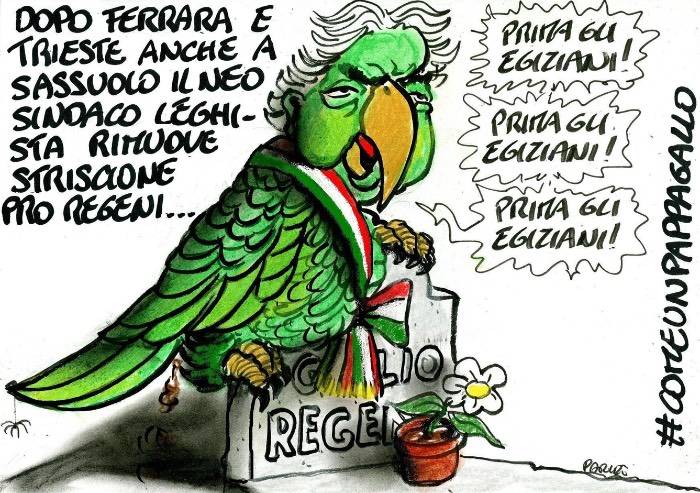 Sassuolo come il Friuli. Dove la Lega comanda non c’e più spazio per la memoria di Giulio Regeni. Via gli striscioni ovunque perché vecchi e impolverati. Perché i simboli valgono sono quando sono convenienti. Regeni era italiano, ma non sassolese tanto basta per non occuparsene, per togliere il cartello a sua memoria e per parlare di black out per le vie cittadine. Perché prima gli italiani vale a corrente alternata. On off. A seconda delle convenienze. E i principi? Ma che principi d’Egitto!