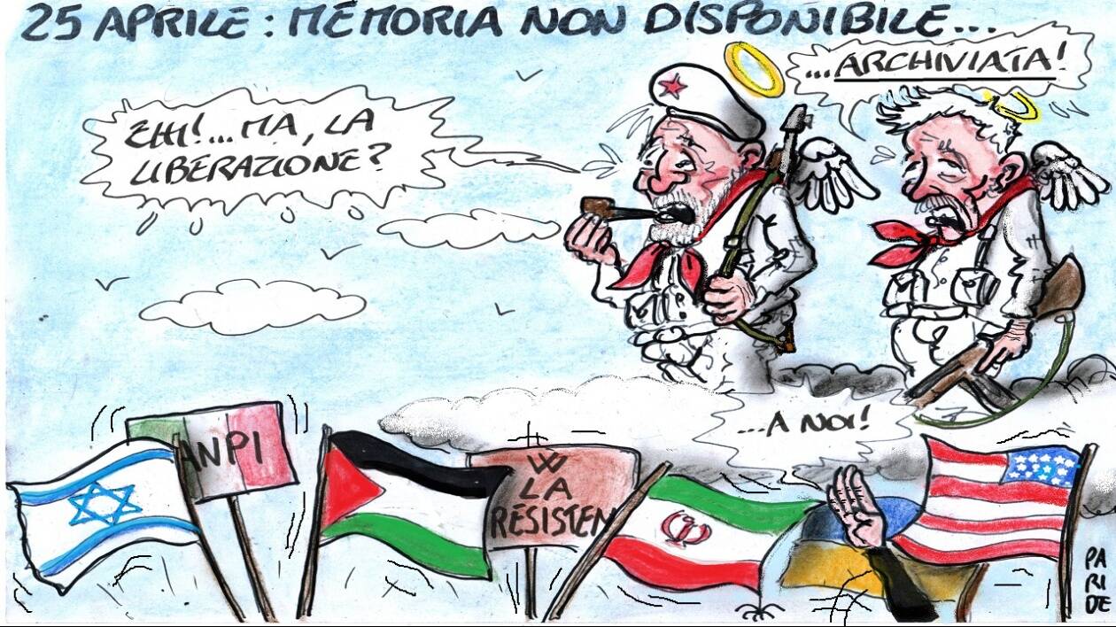 Per il vecchio vignettaro berlingueriano, il 25 aprile era semplice: ricordarsi da cosa ci siamo liberati. Punto. Oggi invece è un corteo dove ognuno porta il suo conflitto: purché sia più nuovo, più spendibile, più urlabile. La Liberazione? Be', la Liberazione è lì, parcheggiata tra una bandiera e l’altra, come uno slogan fuori produzione: troppo scomoda, troppo complessa, troppo poco utile per le tifoserie. Ci hanno liberati, certo: così bene che non abbiamo mai smesso di ringraziarli! E mentre tutti scelgono da che parte stare, resta una domanda fuori dal corteo: non dove stiamo, ma se sappiamo ancora perché. Resistenza, sempre.