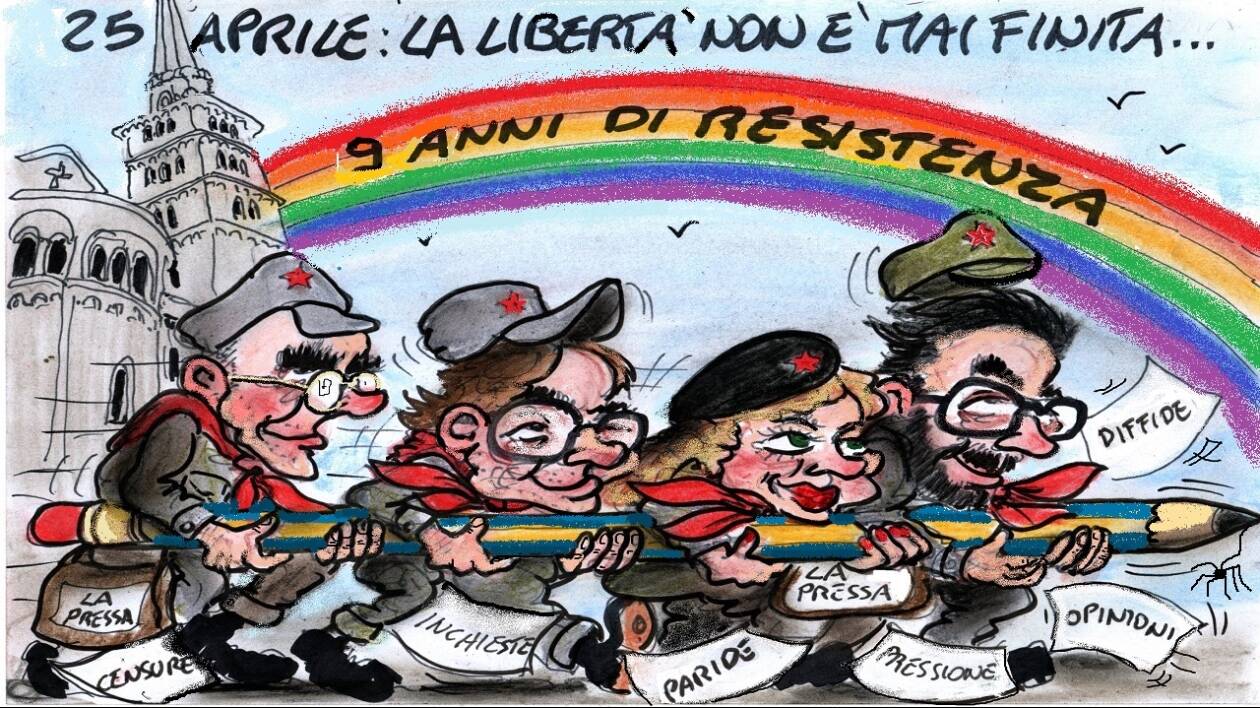 Il 25 aprile è la festa della libertà, quella che tutti difendono, purché non la si usi! Sul palco si celebra la Resistenza, sotto si tollera a malapena chi resiste davvero: chi scrive, chi disturba, chi non chiede permesso. I partigiani avevano i fucili, oggi bastano un matitone e qualche idea sbagliata per diventare un problema. Nove anni fa è nato un giornale: nessun padrino, nessun padrone; quindi sospetto. Ha fatto una cosa semplice e imperdonabile: non stare al posto assegnato. Nel frattempo, la libertà è diventata un oggetto da cerimonia: si espone una volta l’anno, con la fascia tricolore ben stirata, e poi si rimette via, tra una diffida e una telefonata “amichevole”. La chiamano informazione responsabile: è quella che non punge, non graffia, non lascia segni, insomma non serve a niente. Per tutto il resto c’è ancora qualcuno che insiste, scrive, pubblica e rompe, badate bene: non è nostalgia della Resistenza, ma è fastidio presente e, a quanto pare, non è ancora guarito.