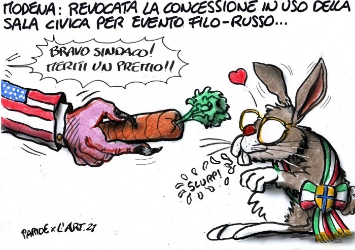 La domanda se la pongono un po' tutti: ma se adesso diventa urgente per il Pd revocare la sala civica per un evento filo-russo, insomma non poteva far pressione al signor Sindaco fin da subito? Cioè, dico, non è che si può fare come ci pare, la sala civica è dei cittadini, sia di destra, di sinistra o di centro, o no? E poi c'è una città come Modena in ballo anzi, c'è un Paese intero, poi c'è Sanremo, ci sono gli stranieri che ci osservano e non aspettano altro che tagliarci lo scalpo, o no?