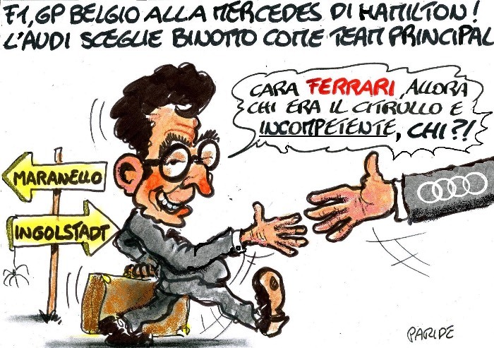 E così, parafrasando il filosofo di turno, a quanto pare si cacciano via certi elementi dalla Ferrari, a ben vedere (e per assurdo) ...'perché lavorino meglio da qualche altra parte', SIC! Esempio eclatante fu, a suo tempo , Aldo Costa, il direttore tecnico della Scuderia Ferrari dal 2008 al 2011 e, successivamente della Mercedes AMG F1 dal 2011 al 2018 dove, proprio nella squadra teutonica, stravinse tutto con Hamilton. Ora l'Audi Motorsport affida proprio a Binotto, ex direttopre tecnico della Ferrari, il rientro dell'AUDI in F1 previsto per il 2026! Vedete, io non credo che gli uomini di oggi lavorino meglio nella concorrenza, ma quello che io so, soprattutto dalle parti di Maranello e che li si... ‘acceca' per tempo, o no? Quindi, signori miei, delle due, l'una: o il patron della Ferrari non ama la Ferrari, oppure è proprio lui un incompetente, se non peggio: fate vobis! Paride Puglia