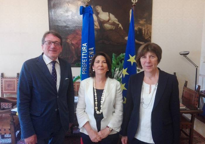 Nella foto il sindaco di Modena insieme al prefetto e alla comandante della polizia municipale