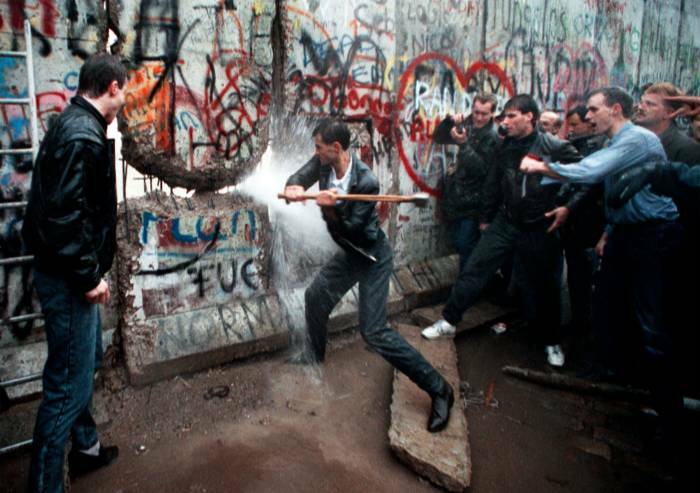 Il 9 novembre 1989 i berlinesi accorsero armati di piccone per demolire l'odiato muro di Berlino. Il muro era lungo 100 chilometri e circondava Berlino Ovest e tagliava fuori la città dalla Germania Est. Il muro era stato costruito per evitare l'emigrazione in Germania est di cittadini preziosi per la comunità: spesso laureati e lavoratori qualificati. Oltrepassare il muro di Berlino era un'impresa quasi impossibile: le guardie armate lo sorvegliavano costantemente e avevano l'ordine di sparare a vista. Data la situazione migliaia di persone si industriarono per trovare modi ingegnosi per oltrepassare la barriera: molti di essi però vennero arrestati mentre tentavano di fuggire e tra 150-250 persone persero la vita nel tentativo. Negli anni 80, con il nuovo leader del partito comunista Gorbacev il muro diventava inattuale e imbarazzante.