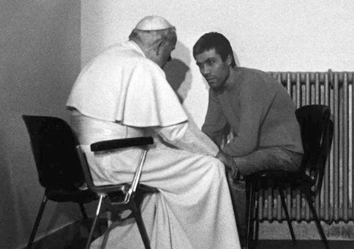 Era il 27 dicembre 1983 quando Giovanni Paolo ll incontrò, nel carcere di Rebibbia, il giovane terrorista turco Ali Agca che il 13 maggio 1981, in Piazza San Pietro, attentò alla sua vita. Erano le 17.19 e il pontefice attraversava la Piazza sulla papamoble: Agca sparò due colpi ferendo il Papa che fu trasportato d'urgenza all'ospedale Gemelli e sottoposto ad un lungo intervento. Cinque giorni dopo l'attentato il Papa recitava l'Angelus direttamente dall'ospedale; rivolto all'uomo che cercò di ucciderlo disse: 'Prego per il fratello che mi ha ferito, al quale ho sinceramente perdonato'.
