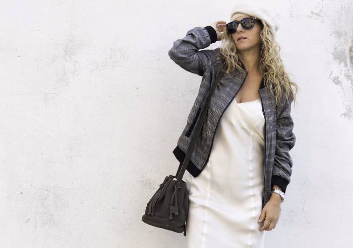 Un classico casual reinterpretato alla luce delle ultime tendenze con nuances bronzo scuro e ricami floreal country come quelli che vi presento in questo look. Il tutto per una versione neutra che può essere usata dal mattino alla sera, nel tempo libero, ma anche in ufficio, come faccio io. Oggi, con ho pensato di fare un look Grunge Romantic, abbinando i texanini ad una sottoveste color crema, con spalline delicate e romantiche. Mi piace molto il contrasto creato tra il casual dello stivaletto e la delicatezza dell’abitino sottoveste lungo e soft. Due colori opposti a cui ho aggiunto un bomber over in Principe di Galles, un baschetto neutro e un paio di occhiali neri con una mini basket bag.