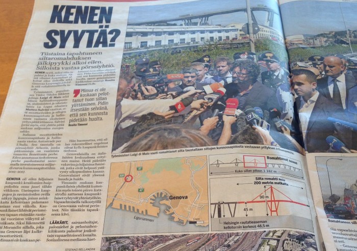 La stampa finlandese e il dramma di Genova: cosìil quotidiano di Helsinki