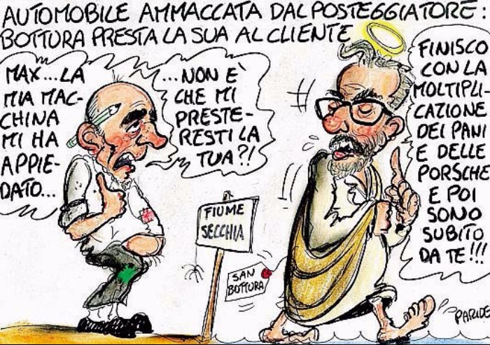 Ebbene? Ebbene Massimo Bottura, novello San Martino - degno interprete del nome del suo locale, Francescana - ha spezzato in due il mantello. Si capisce, metaforicamente... Prima ha chiamato la Ferrari a Maranello per accertarsi che i suoi clienti riavessero il bolide aggiustato nel minor tempo possibile, poi ha messo a disposizione la sua stessa auto. Sua, beh a quanto pare non proprio sua sua. Ma comunque la Maserati che lui guida. Una telefonata alla casa del Tridente e l’ok è arrivato immediatamente. E infine una bella lavata di capo al ragazzo dell’hotel che ha distrutto la Ferrari. Accidenti a lui.Per i turisti svizzeri una gioia impagabile. Hanno chiamato «fratello» Bottura, hanno fatto un video, sono finiti su un quotidiano locale e si sono prostrati davanti a tanta generosità. Forse nel 335 nemmeno il mendicante infreddolito si commosse tanto di fronte al gesto del militare Martino. Ma vogliamo mettere un mezzo mantello una notte di inverno, con una Maserati per scorrazzare tra i ristoranti più costosi d’Italia. Che almeno quelli, pur facendo pagare 250 euro a coperto, non si chiamano «Francescana»? Beh, il ringraziamento deve sempre essere proporzionato.