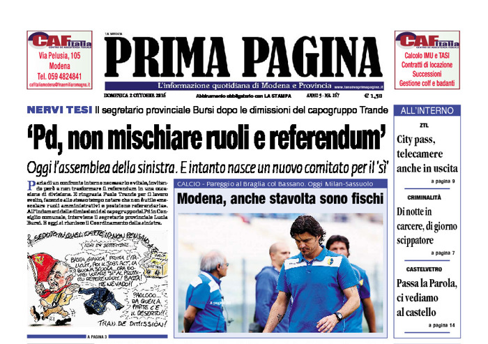 Pdf scaricabile del Quotidiano Prima Pagina di Domenica 2 Ottobre 2016