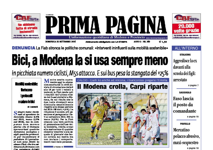 Pdf scaricabile del Quotidiano Prima Pagina di Domenica 25 Settembre 2016