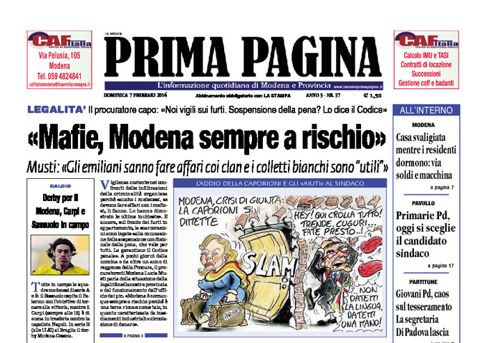 Pdf scaricabile del Quotidiano Prima Pagina di Domenica 7 Febbraio 2016