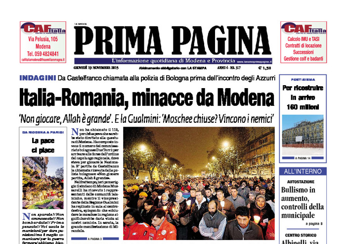 Pdf scaricabile del Quotidiano Prima Pagina di Giovedì 19 Novembre 2015
