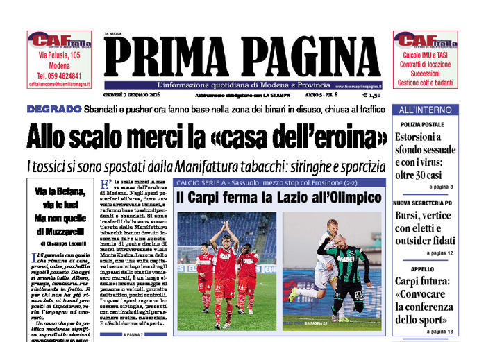 Pdf scaricabile del Quotidiano Prima Pagina di Giovedì 7 Gennaio 2016