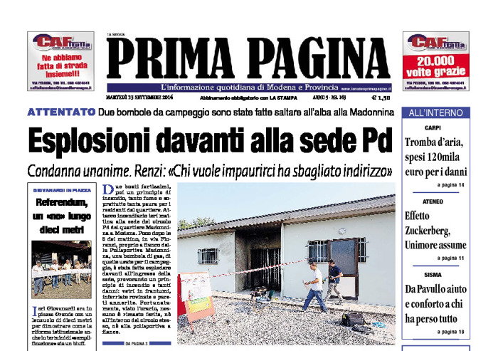 Pdf scaricabile del Quotidiano Prima Pagina di Martedì 13 Settembre 2016