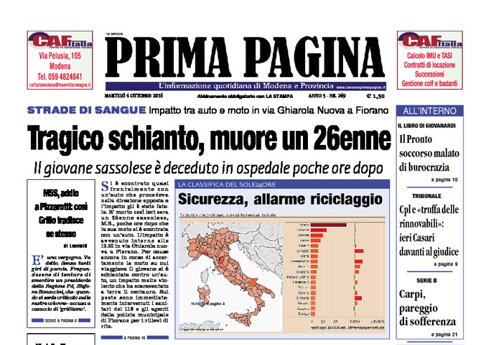 Pdf scaricabile del Quotidiano Prima Pagina di Martedì 4 Ottobre 2016