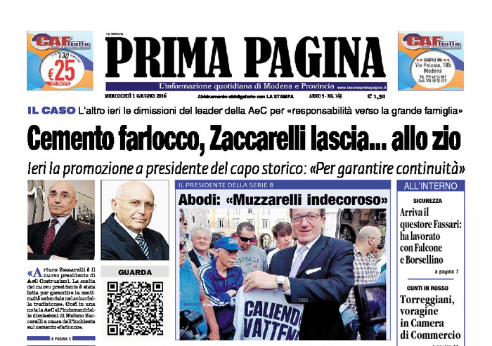 Pdf scaricabile del Quotidiano Prima Pagina di Mercledì 1 Giugno 2016