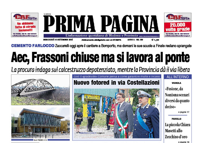 Prima Pagina - Mercledì 14 Settembre 2016