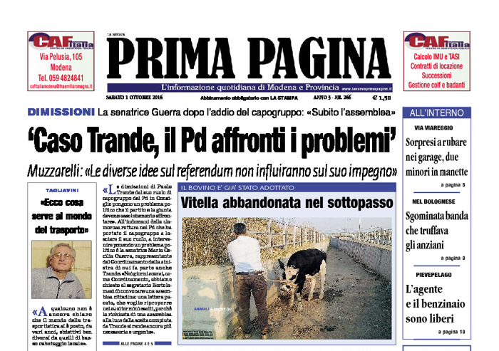Pdf scaricabile del Quotidiano Prima Pagina di Sabato 1 Ottobre 2016