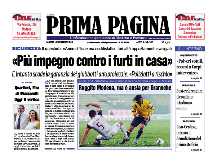 Pdf scaricabile del Quotidiano Prima Pagina di Sabato 19 Dicembre 2015