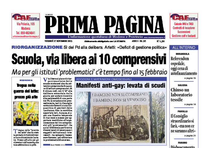 Pdf scaricabile del Quotidiano Prima Pagina di Venerdì 27 Novembre 2015