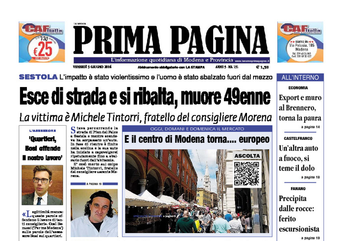 Pdf scaricabile del Quotidiano Prima Pagina di Venerdì 3 Giugno 2016